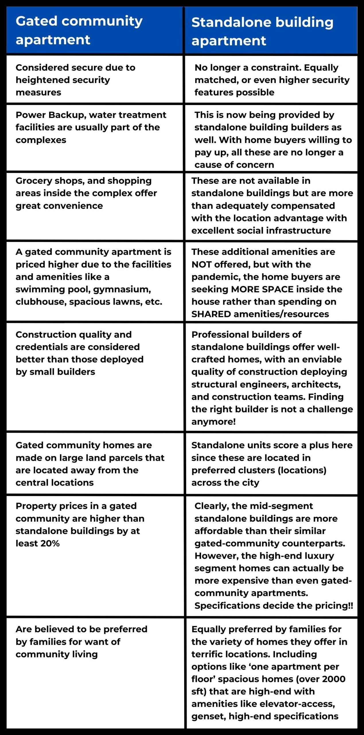 How do standalone building flats measure-up against gated community apartments?